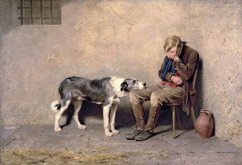 In medieval tombs across Europe, stone effigies of lords and ladies so often have a small dog curled at their feet, a representation of fidelity that even death cannot break. Victorian painters like Rivière returned to this theme again and again because they knew their audience would feel it in their bones. We still do.